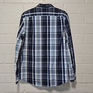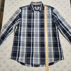 Michael Kors Long Sleeve Button Down Men's Shirt Blue Gray Plaid Size L