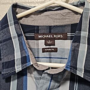 Michael Kors Long Sleeve Button Down Classic Fit Blue and Gray Plaid Size L Please reference photos for measurements and condition. Thanks for taking a look!