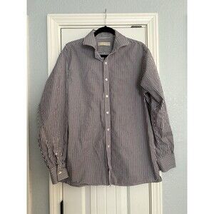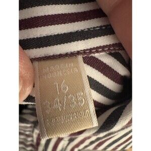 Michael Kors Long Sleeve Mens Size 16 34/35 Maroon Gray Button Up Dress Cotton