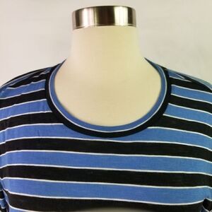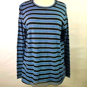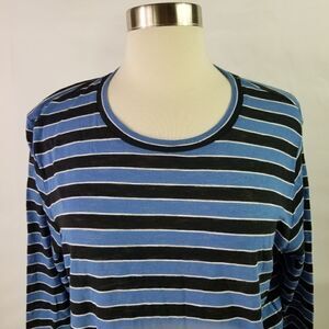 Blue black and white striped long sleeve tee. Michael Kors. Approximate measurements are 22". Length is approximately 27". Sleeves are approximately 25".