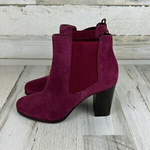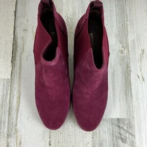 Michael Kors Lottie Women’s 10 Berry Suede Block Heel Ankle Boots New pull on
