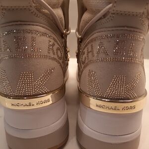 Michael Kors Lula MK Signature Outline Jacquard Boot Bootie NWOT Gold/Ivory - 7M