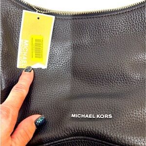 Michael Kors Lupita Messenger Bag Black/Silver Hardware Pebbled Leather NWT