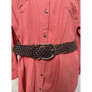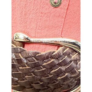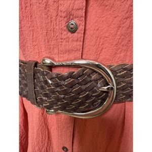 Michael Kors M Braided Belt Dark Brown Leather Western 2" Wide Silver Buckle