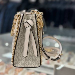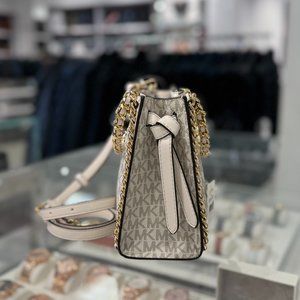 Michael Kors MINA Small Belted Chain Shoulder Crossbody Bag MK Light Cream Multi