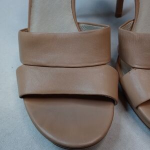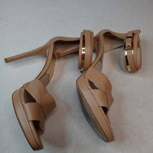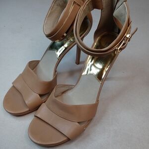 Michael Kors MK Back Zip Nude beige Stiletto 4.5" Heels Shoes Womens 9.5M open toe sandal. Condition is "Pre-owned". Shipped with USPS Priority Mail. 237.1pem