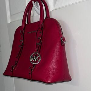 Michael Kors MK Bedford Legacy Dome Satchel Purse Bag Red pebbled leather