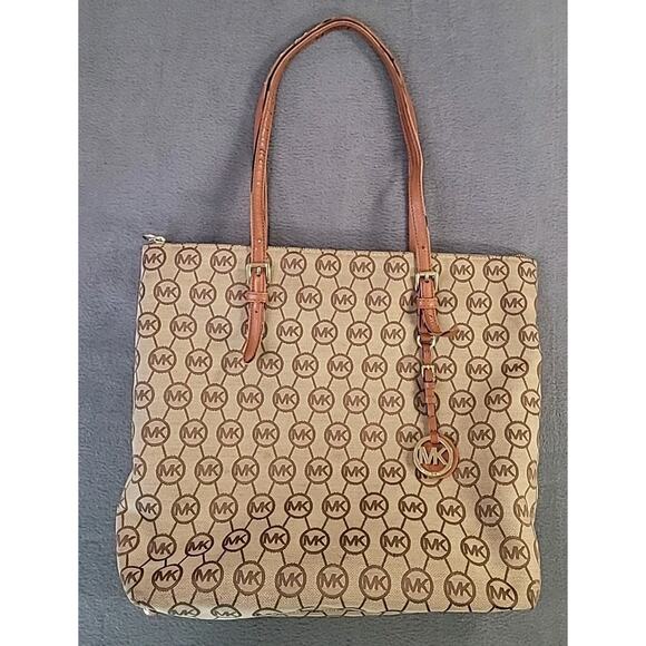 Michael Kors MK Beige & Brown Tote – Classic Shoulder Bag – Tons of Pockets