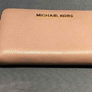 Michael Kors MK Designer Beige Zip Up Bifold Wallet