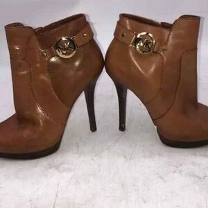 Michael Kors MK Designer Wyatt Brown Leather Stiletto Heel Ankle Bootie 7.5