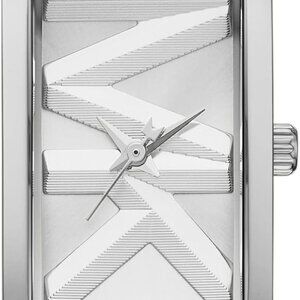 Case & Dial: Rectangular 30mm stainless steel case with a silver dial; mineral crystal face resists scratches