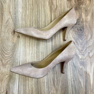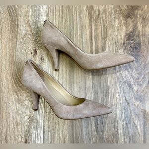 Michael Kors MK Flex Mid Pump Pointed Toe Suede Beige Heels Size 8 M