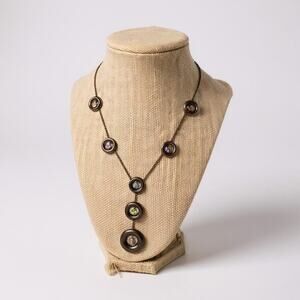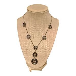 Michael Kors MK Gunmetal Multicolor Rhinestone Station Circle Necklace Y Drop