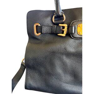 Michael Kors MK Hamilton Tote Handbag Purse Black Pebbled Leather