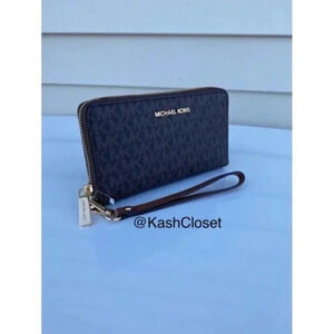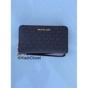 Michael Kors MK Jet Set Travel Large MF Phone Case Wallet/ Wristlet Brown