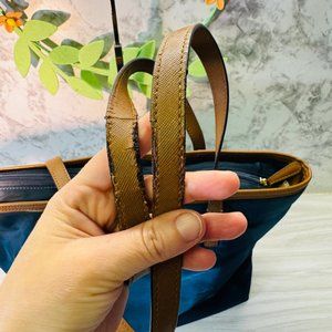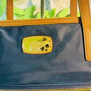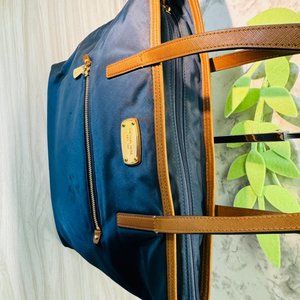 Michael Kors MK Kempton Blue Nylon Saffiano Large Leather Satchel Tote Bag