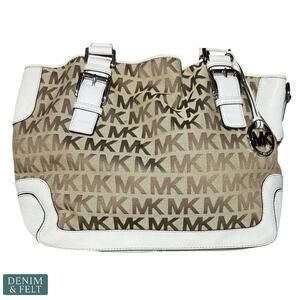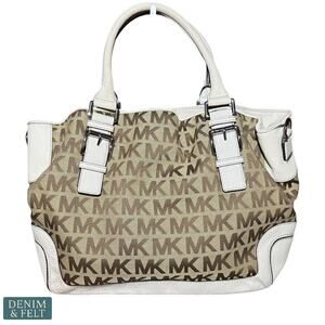 • Color: Brown MK logo canvas with cream/ivory leather trim and silver-tone hardware