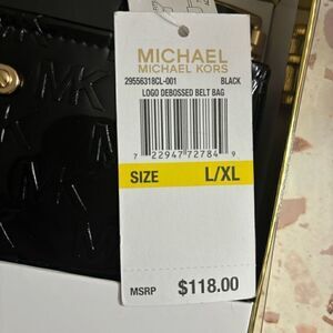 Michael Kors MK Logo Debossed Adjustable Belt Bag Patent Leather Black L/XL