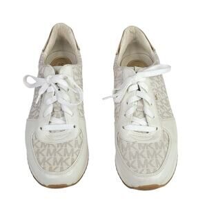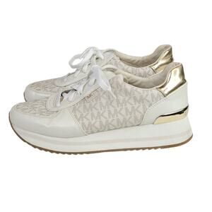 Michael Kors MK Logo Monique Trainer Platform Sneakers Size 8 Cream Gold