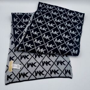 NWOT Michael Kors MK Logo Reversible Scarf Black/Silver