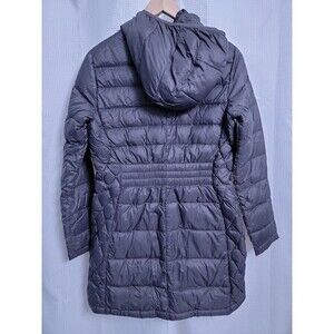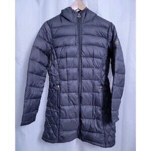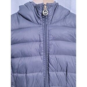 This is a Michael Kors MK Packable Down Hooded Jacket Womens PS Gray/Gold.