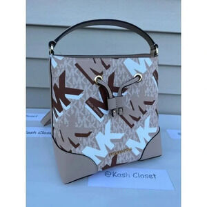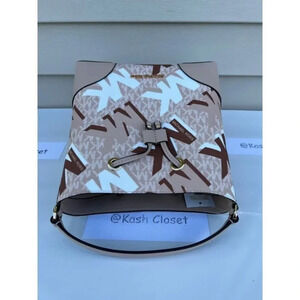 Michael Kors MK Purse Mercer Medium Drawstring Bucket Messager Bag -Buff Multi
