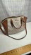 Keywords: Michael Kors handbag, MK signature print bag, Dome satchel, Crossbody bag, Leather trim, Designer purse, Shoulder bag, Women's handbag, Fashion bag, Brown and beige bag, MK logo bag, Authentic Michael Kors, Travel bag, Work bag, Stylish handbag