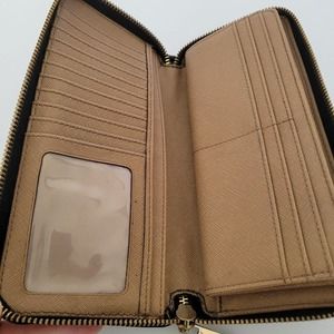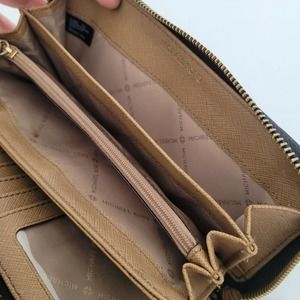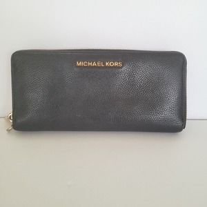 Michael Kors MK Zip Around Wallet Organizer Black 8x4 Large Logo Pebble Leather