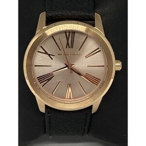 Michael Kors MK3491 Women's Black Leather Analog Brown Dial Quartz Watch HK945