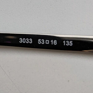 Lens: 53 mm, Bridge: 16 mm, Temple: 135 mm