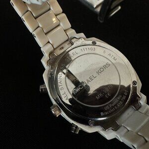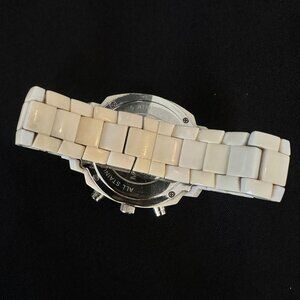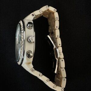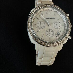 Michael Kors MK5079 Chronograph White Ivory Acrylic Bracelet Watch Crystal Bezel