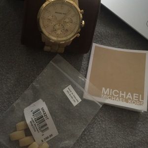 Brand new. Had one link taken out but have the link in bag. Too big for me to wear. Bought at regular price $250.00 willing to trade for MK Bling Watch
