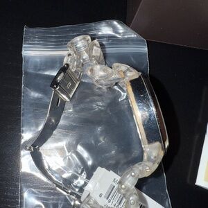 JET SET SPORT (MK5235) is a woman 's watch of MICHAEL KORS 2012 collection. With quartz analog movement, it has a stainless steele case with clear acrylic band. This model is equipped with functions calendar - chronograph. Needs a new battery