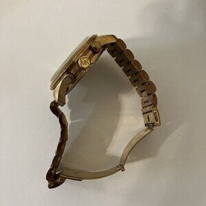 Michael Kors MK5384 Gold Wrist Watch Women Preowned needs new battery. Needs so tender love