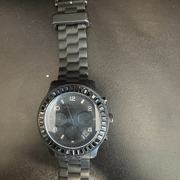 Michael Kors MK-5395 Chronograph Watch – Black Silicone Strap - New Battery