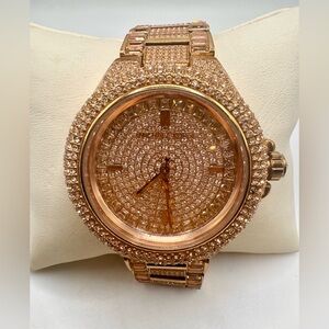Michael Kors MK5862 Camille Rose Gold Tone Womens Wrist Watch. New battery. It runs. The links have some color wear. Fits approximately an 8 inch wrist. No box or papers.