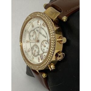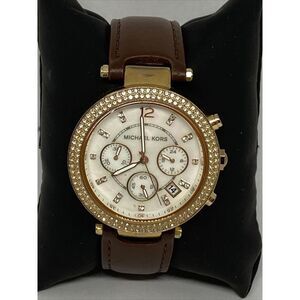 Michael Kors MK5896 Women's Brown Leather White Analog Dial Quartz Watch XX739