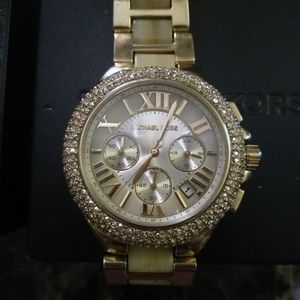 Michael Kors MK5902 Camille Glitz Chrono Yellow Gold Steel and Horn Acetate Bracelet Watch. Pre-owned in great shape. Maybe A few minor scratches. But basically never worn. Also has a New battery.