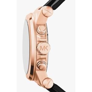 This stunning black silicone Michael Kors chronograph has a rose gold-tone case and a black dial.