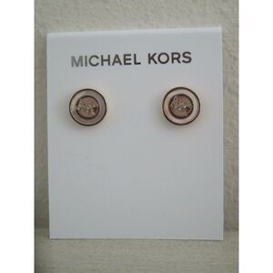 Michael Kors MKJ7764710 Monogram Mop Stud Earrings Gold Crystals MK Logo