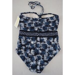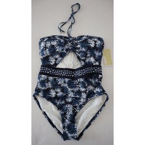 Michael Kors MM8J591 Size 8 Navy Palm Print Bandeau Cutout 1-Piece Swimsuit