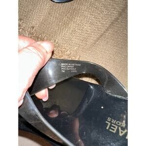 Item Description: MICHAEL Michael Kors MK round Gold Logo size 8M Black Jelly Thong Flip Flops Sandals GUC