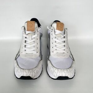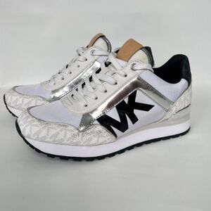 Michael Kors Maddy Signature Logo Trainer Sneakers White/Black/Silver Size 6M
