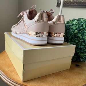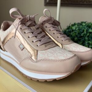 Sport-luxe style with a sophisticated touch, the Maddy trainer is designed in a classic, low-top silhouette and features signature-print and metallic accents. Keep this pair in focus with an all-white ensemble or cropped denim.