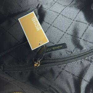 Chic Michael Kors shoulder bag in cream with black accents. Stylish and versatile for any outfit.