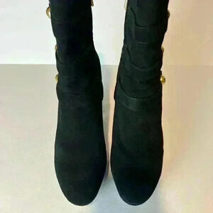 Michael Kors Maisie Leather Platform Ankle Boot in a size 11. In good pre-loved condition . Back of heels show some signs of wear (see photos). Round-toe booties with side zipper. Triple strap and signature button detail at shaft.