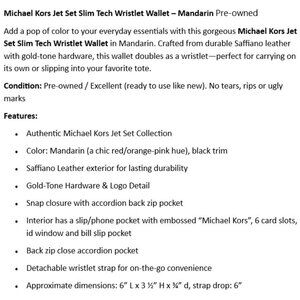 Michael Kors Jet Set Slim Tech Wristlet Wallet – Mandarin Pre-owned