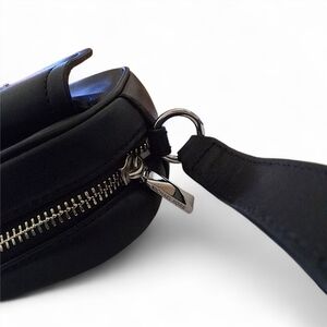 Michael Kors Manhattan Large Camera Crossbody Bag Black Leather Silver MK Logo
