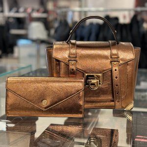 Michael Kors Manhattan Medium Satchel Shoulder Crossbody Bag + Wallet Mocha