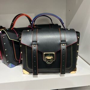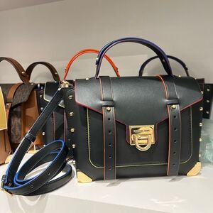 Michael Kors Manhattan Medium Contrast-Trim Black School Satchel xbody Messenger